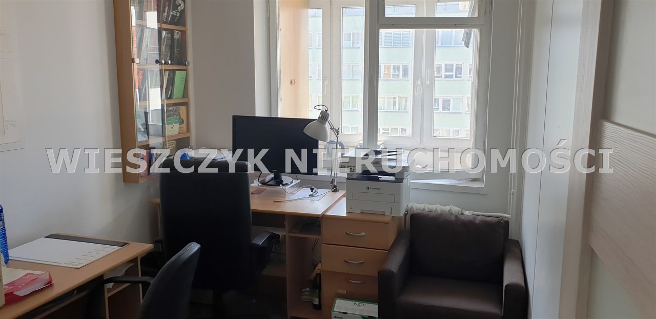 SUPER LOKALIZACJA!!. CENY BRUTTO!!. Samodzielny trzypokojowy, dwustronny lokal biurowy w budynku z całodobowym monitoringiem. Możliwość połączenie dwóch większych pokoi w jedną otwartą przestrzeń( jest solidna składana ścianka działowa). Lokal znajduje się w świetnym punkcie komunikacyjnym, dwie minuty do metra. Ścisłe centrum. Dużo miejsc parkingowych przy budynku. Idealnie nadaje się na siedzibę firmy, biuro, małą kancelarię lub inną działalność. Klatka po remoncie. Dodatkowo płatny czynsz 650 zł oraz media wg. zużycia. Zdecydowanie oferta godna polecenia. Zapraszam na prezentację (klucze w biurze). Pośrednik odpowiedzialny zawodowo za wykonanie umowy pośrednictwa Piotr Wieszczyk licencja nr: 8021.